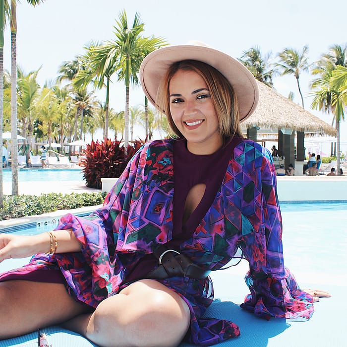vUtilicé casualmente una batola de Herman Nadal de su colección Otoño-Invierno 2017. Como saben, la moda en Puerto Rico es atemporal así que convertí este traje invernal en el perfecto cover-up para un día de playa o esa blusa con vuelo que usas con un pantalón corto.