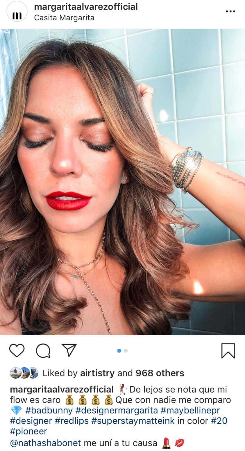 Estoy dándome unas margaritas frente al atardecer en Rincón, y mi Sephora Cream Lip Stain en 01 Always Red ha sobrevivido un día entero en la playa y en el agua con mi sobrino. Acabo de pedir una ensalada caribeña llena de aceite de oliva así que no creo que dure mucho, pero me encanta lo sexy and confident que me hizo sentir en tu día tan tropical y relax.