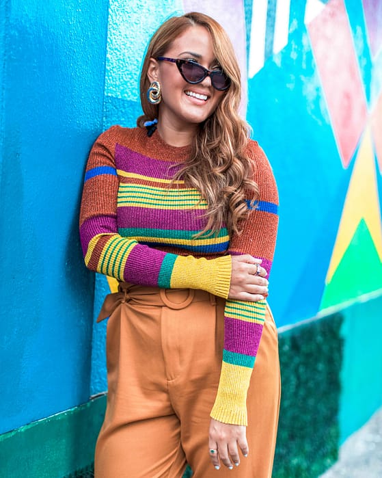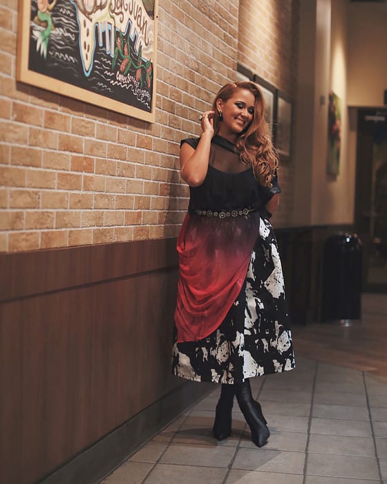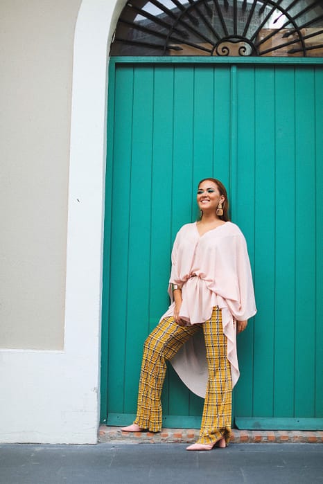 Blusa de Herman Nadal City Lights Collection; falda de Bella Moda Boutique; botas de Zara; aretes de Elaine Moreira.
