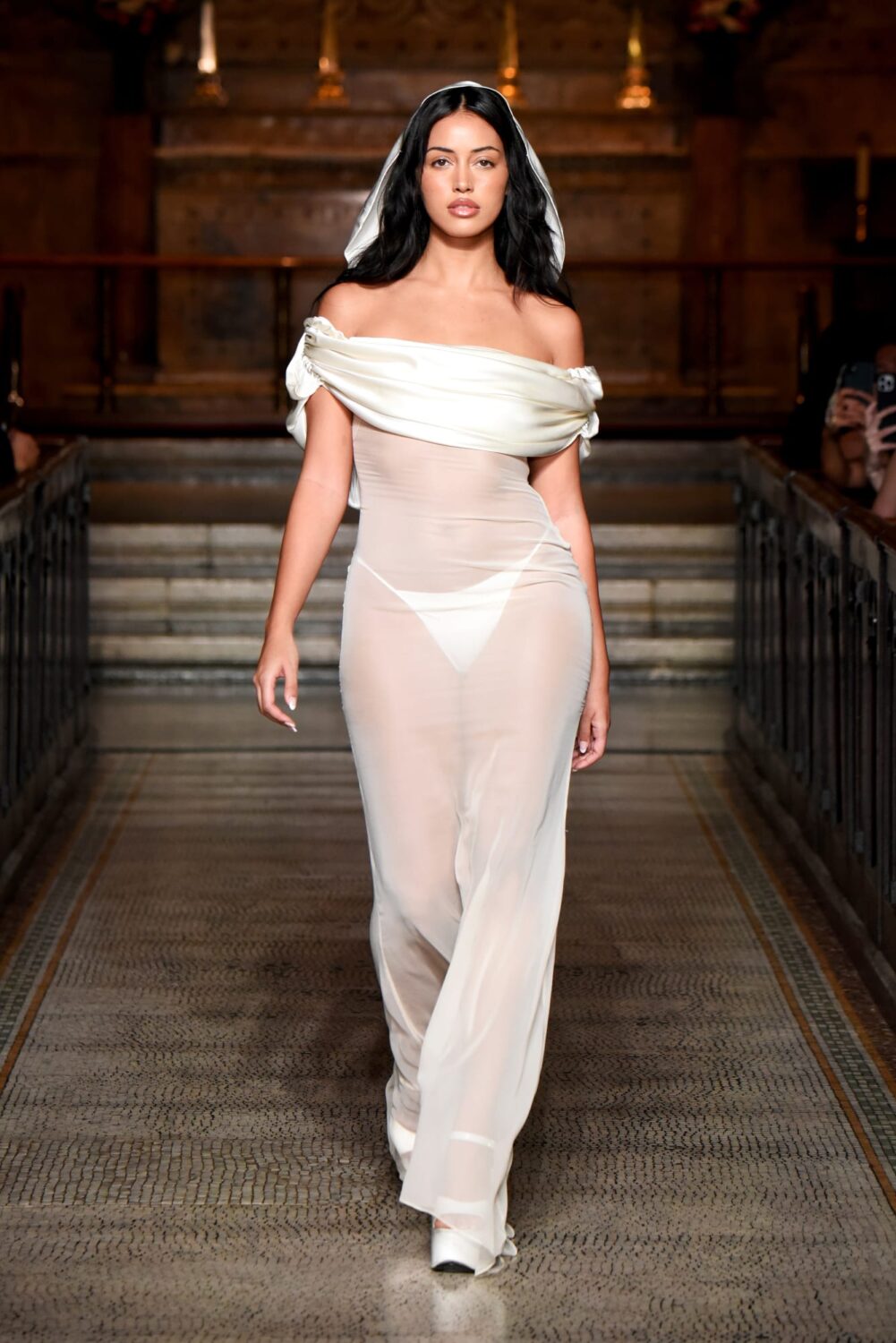 La mejor manera de que el blanco hable es con texturas, o sea, telas que tengan mucho que decir. Piensa en transparencias, capas, tul, bordados… que ese blanco etéreo se convierta en volumen, grandeza y movimiento.