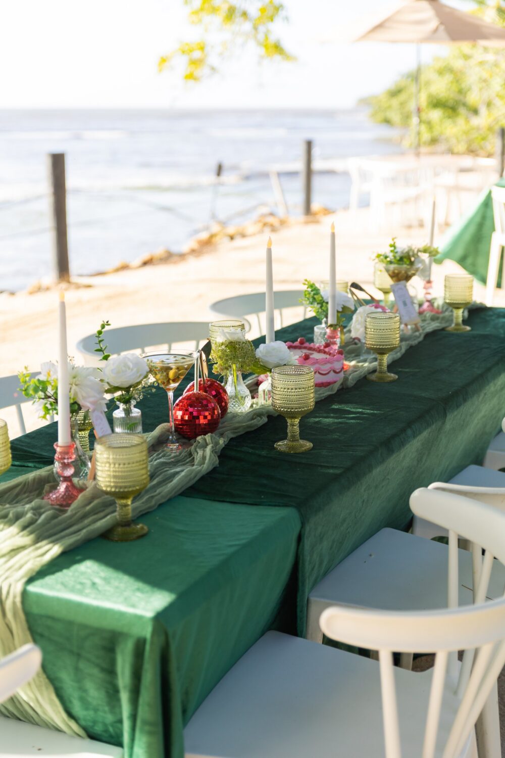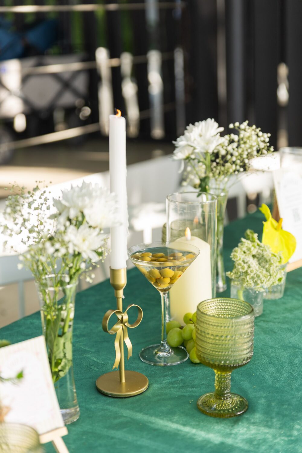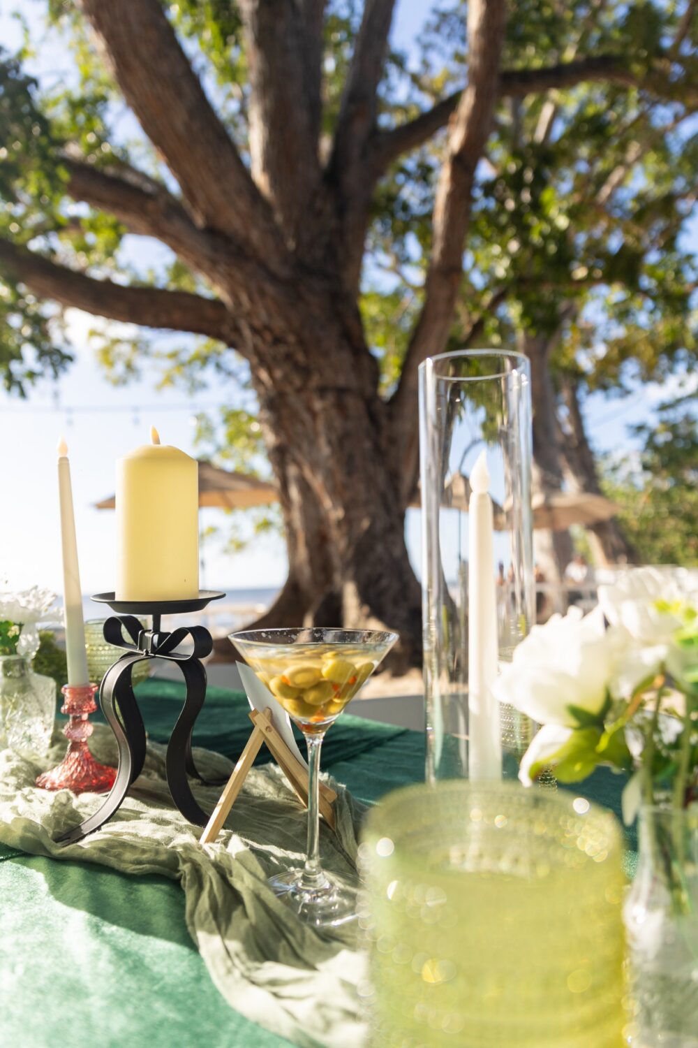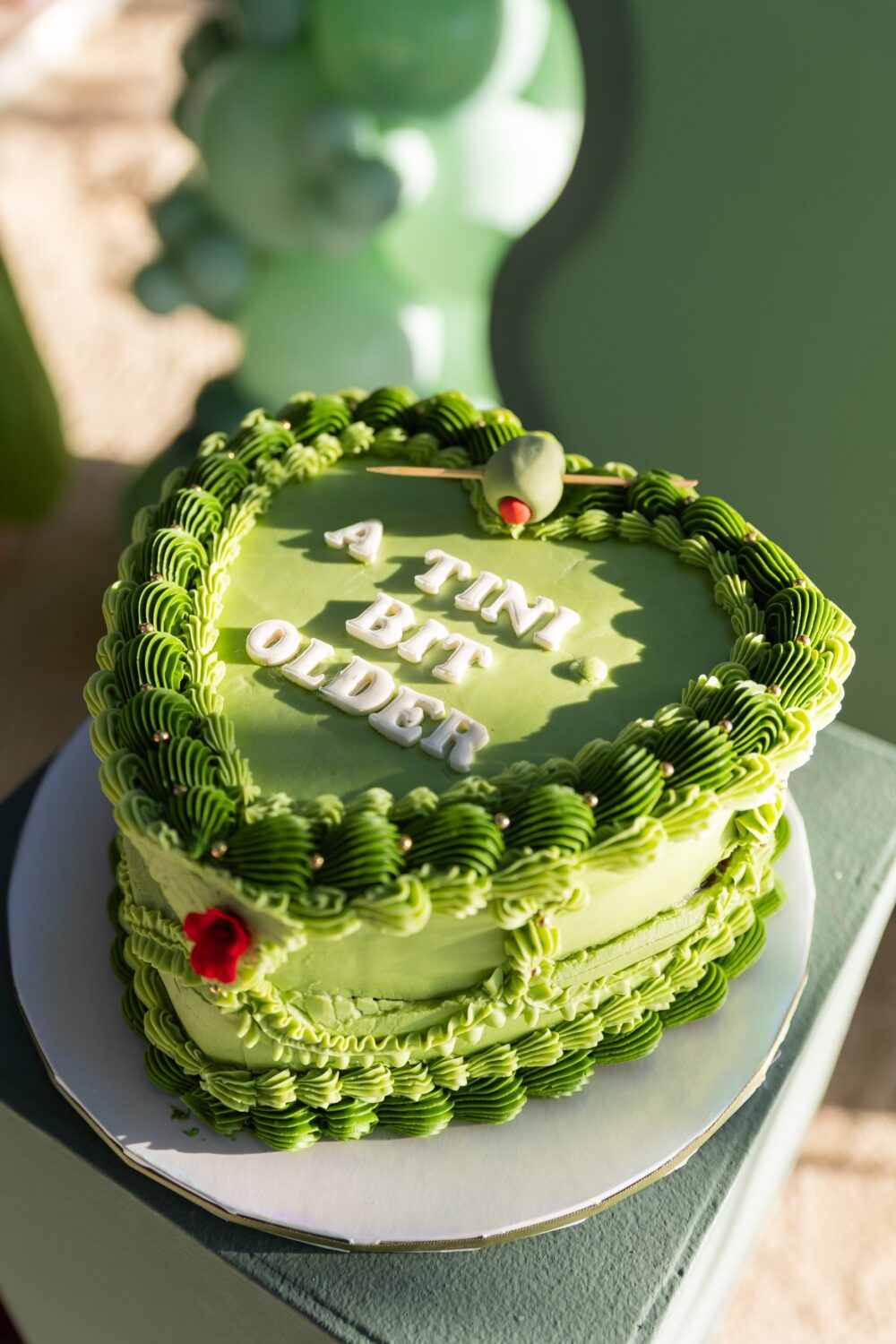 La visión era clara: una oda al color de la oliva, martinis y esa vibra glamorosa que toda treintona aprecia. Trabajé con Viviana del Rocío, creadora de Picture Perfect Events, quien captó y elevó la decoración a otro nivel con sus detalles.