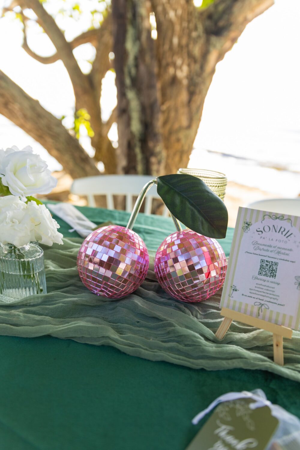 2. Mesa de Amistades: ¡Pura diversión! Toques rosa y disco balls para ese vibe fun & funky que me caracteriza.