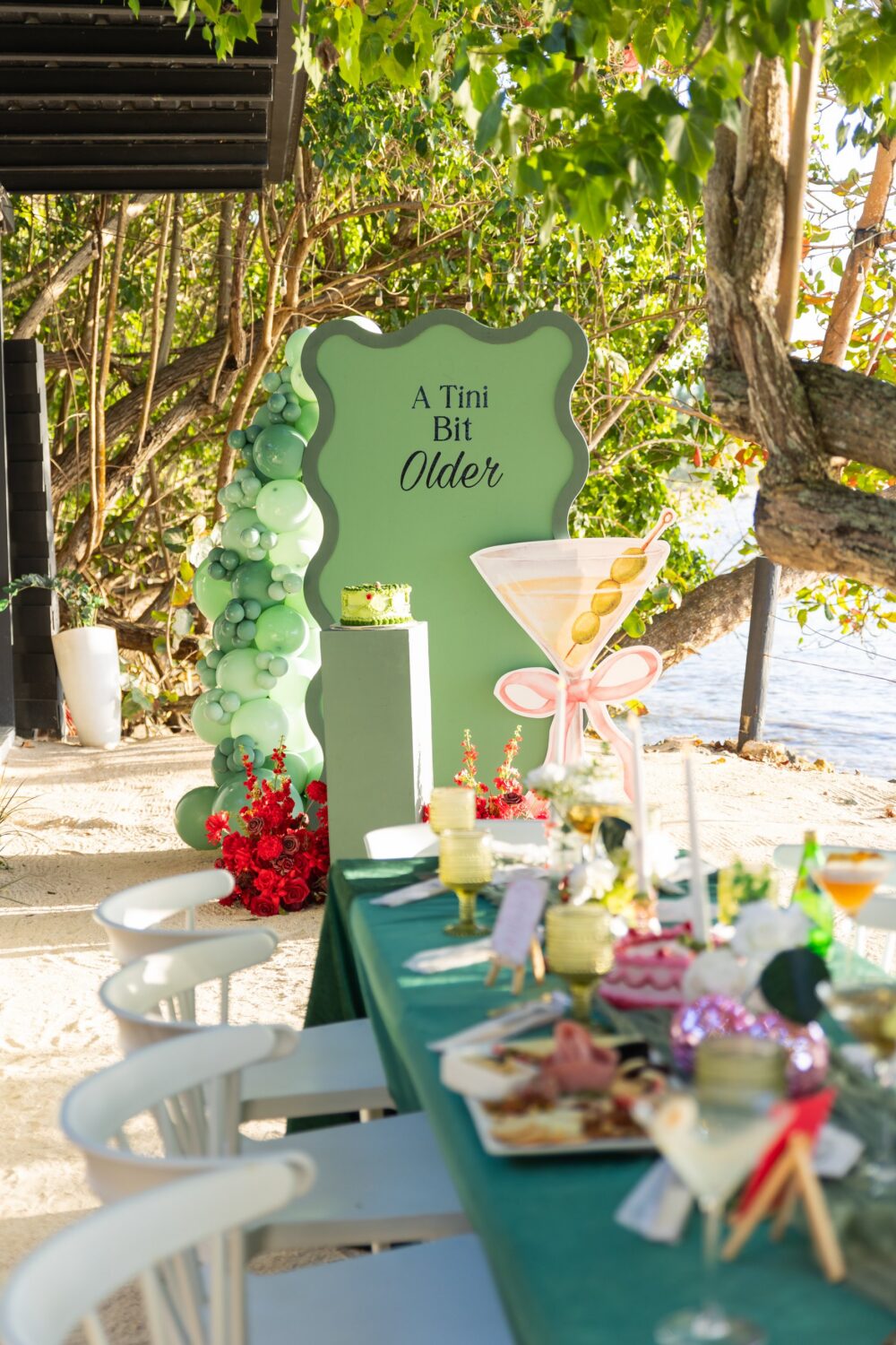 Buscando inspiración en Pinterest, los conceptos Dirty Two (jugando con la palabra thirty) y A Tini Bit Older me encantaron. Mi go-to-drink es el vodka, y aunque no siempre la tomo dirty, la estética del martini tiene esa sofisticación atemporal que buscaba.