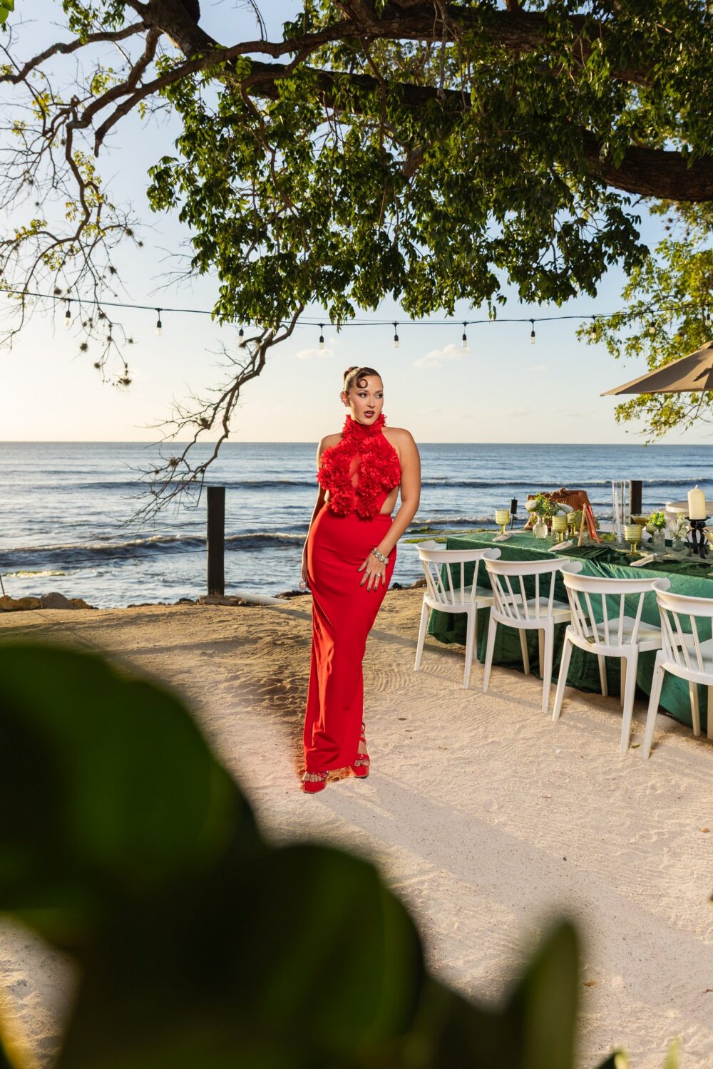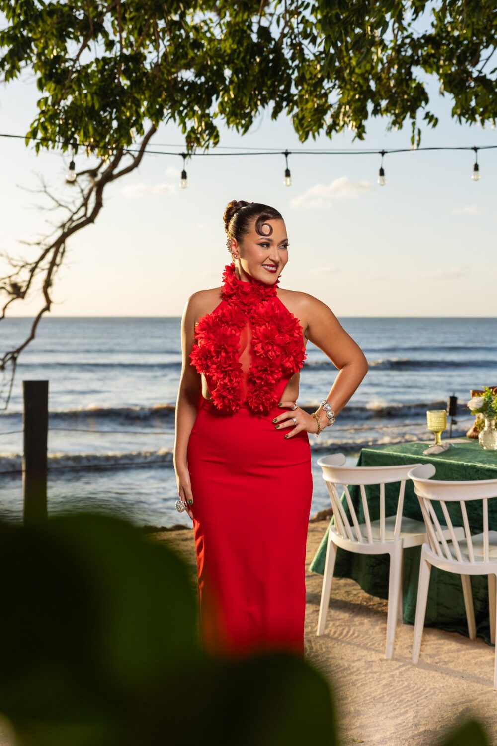 Para el arreglo quería esa vibra Old Hollywood y la maquillista Krystal Nickole entendió y elevó lo que quería. Sabía que quería sentirme en libertad de moverme sin estar pensando en el cabello así que tomé el riesgo de hacerme algo diferente y el toque del busca novios (como le decimos en Puerto Rico) me hizo sentir sofisticada toda la noche.