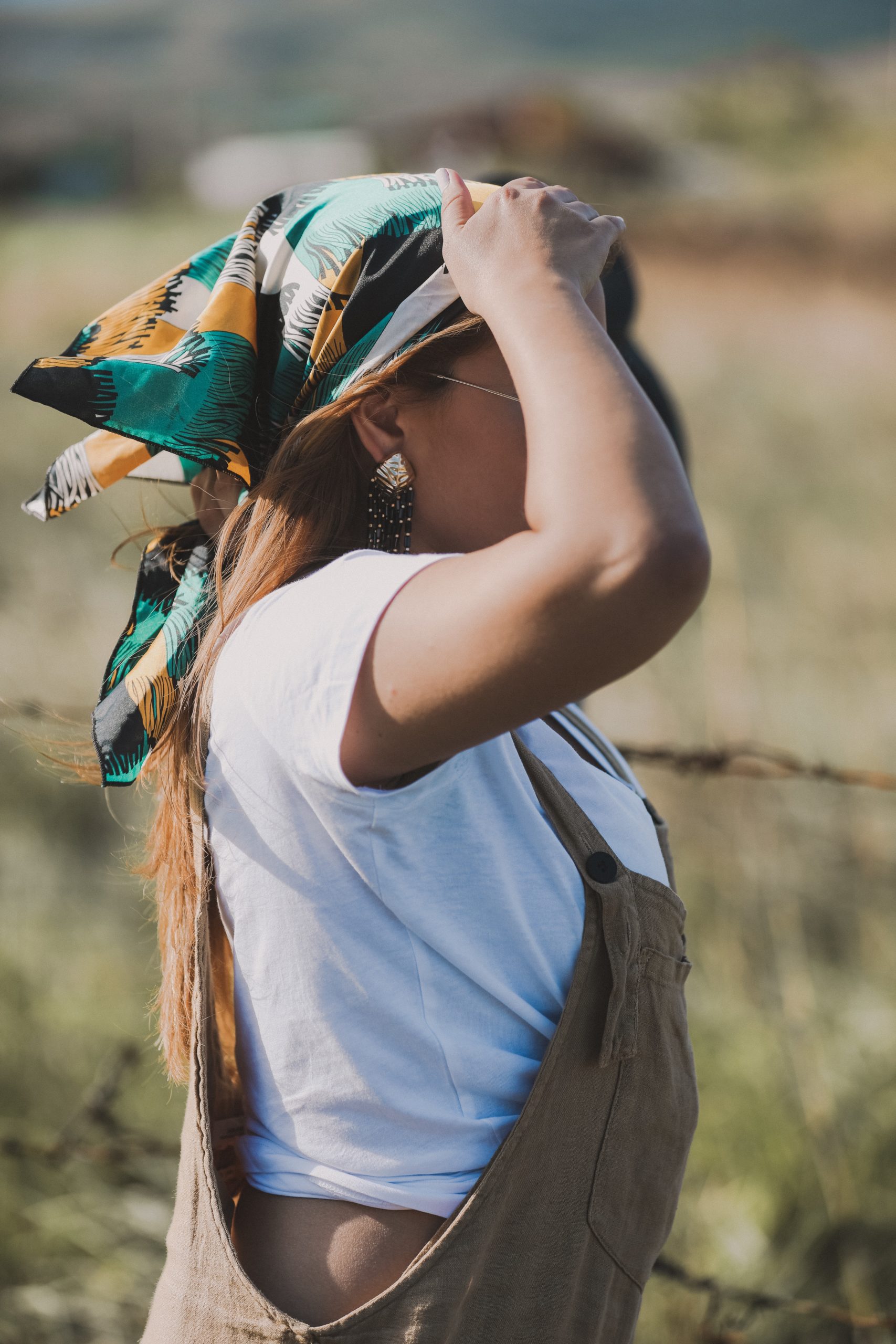 Las brisas se disfrutan y te despeinan, pero con un pañuelo puedes librar tu vista y vivir el momento sin incomodidades.