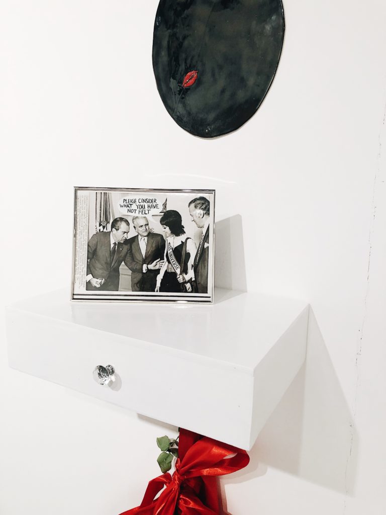 Blood Lines de Lucía Hierro es una de las propuestas. «Es una yuxtaposición del dictador dominicano Rafael Trujillo, uno de los más sanguinarios que ha tenido Latino América, y su descendencia directa Ramfis, quien se está postulando para gobernador ahora en el 2020. Quisimos que las personas pudieran pisar literalmente esta historia  [literalmente] con nosotros», explica Amy Hussein, directora y fundadora de Casa Quién.