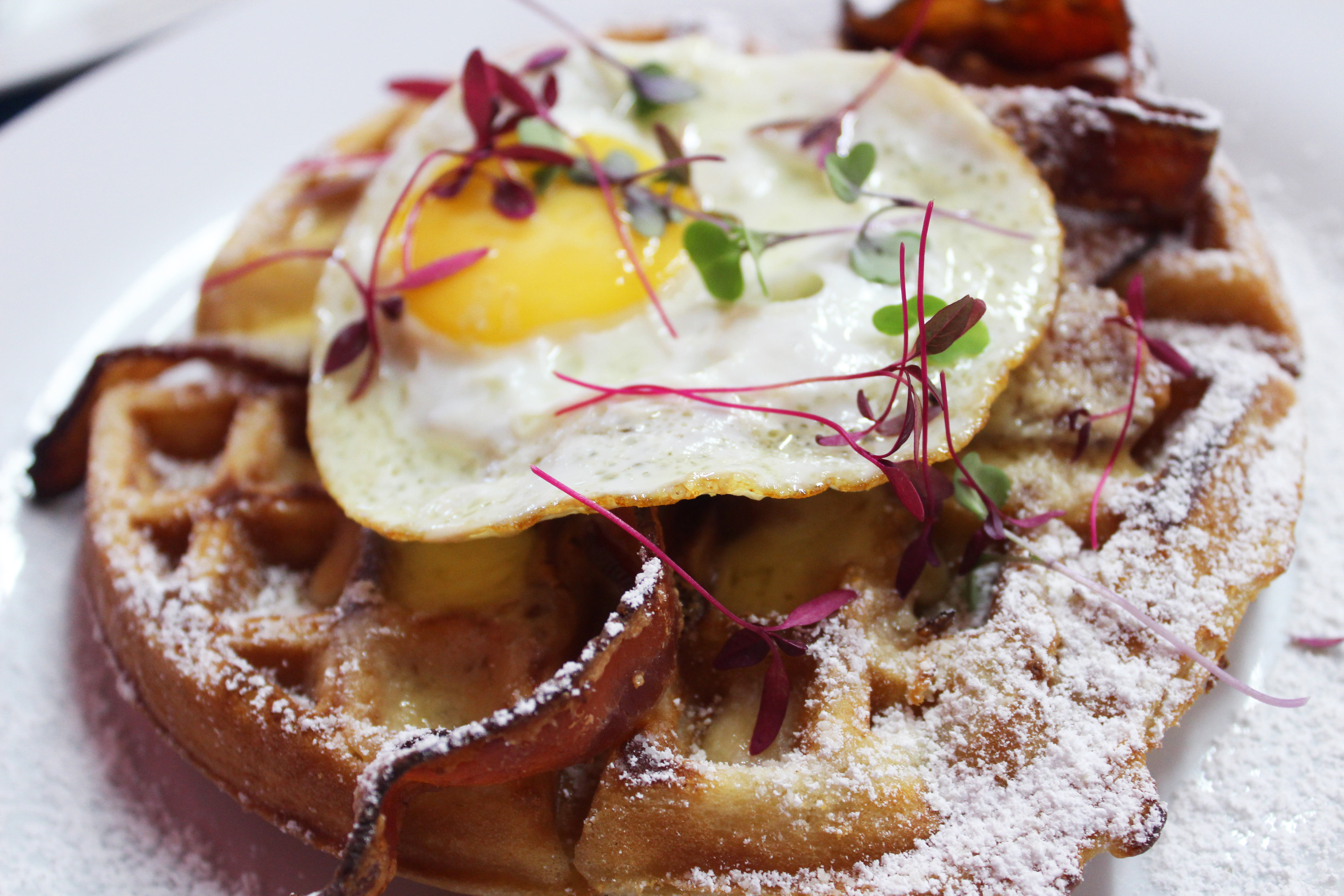 ¿Mi elección? Un waffle con huevo frito que era el equilibrio perfecto entre texturas. La frescura de los ingredientes orgánicos se siente en cada bocado. Si son amantes de lo artesanal, este es su lugar: aquí el pan es protagonista y la calidad no se negocia. ¡Se los recomiendo a ojos cerrados!