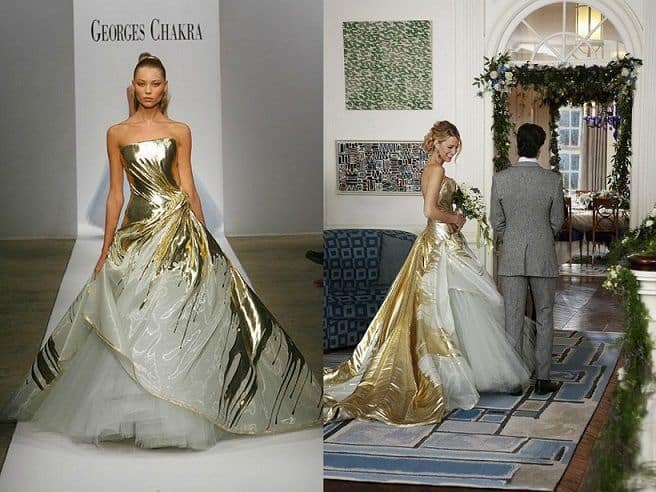 Aunque inesperados, los colores metálicos pueden ser integrados en tu traje de novia. Pregúntale a Serena Van Der Woodsen, el personaje de la serie Gossip Girl.