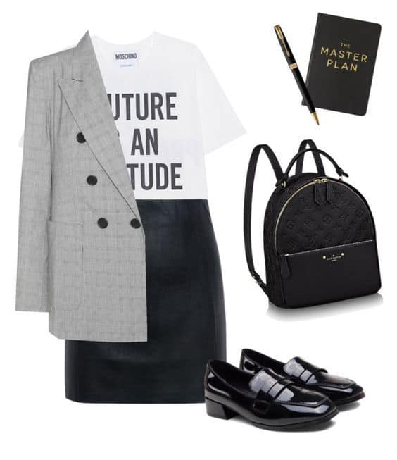 En lo primero que pienso cuando veo este look es en alguna profesión relacionada con las comunicaciones. Si estudiaste Fotografía, Televisión o Cine en Sagrado, este es tu atuendo. 😂 Quizás este no sea tu go-to-outfit todos los días (todos sabemos que entre el oficio y el calor es too much), pero es el ideal para una entrevista per se. Te gusta comunicar a través de tu vestimenta y no solo estás segura de ti misma, sino también de todo el conocimiento que tienes. Sustituye los zapatos por tacos, e igual serás la beba de las bebas.