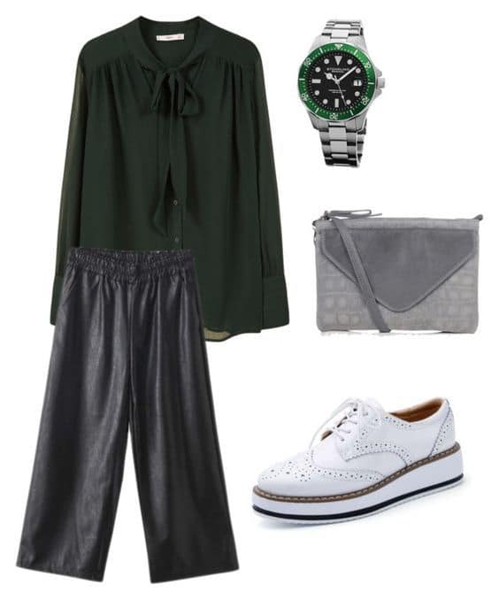 Un look deportivo, cómodo, pero conservador. No estás enseñando ni pechos, ni hombros ni muslos. Además que el lazo de la blusa le añade formalidad. Con estos Oxford Flatforms te harás proyectar que estás lista para lo que venga. Ideal para un trabajo activo, casual, que tengas que estar mucho en la calle o moviéndote de lado a lado. Estás tomando en consideración la formalidad de la entrevista con la blusa, pero a la vez con estos pantalones culottes te verás más relajada.