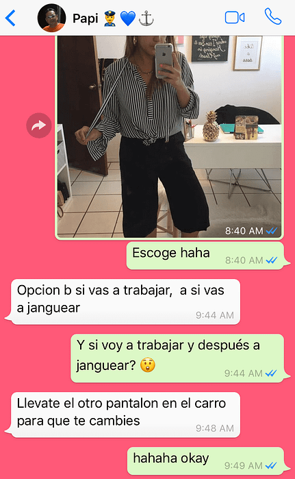 Ya era viernes y estaba cansada de tener que esperar que papi contestara mis mensajes para poder irme a hacer mis cosas. Cabe destacar, que se tardaba muchísimo en contestar los textos. Esta vez tenía que ir a trabajar, hacer unas diligencias en la calle, pero luego en la noche quería darme unas copas de vino after-work. Así que el look que escogiera tenía que funcionarme para las dos cosas.