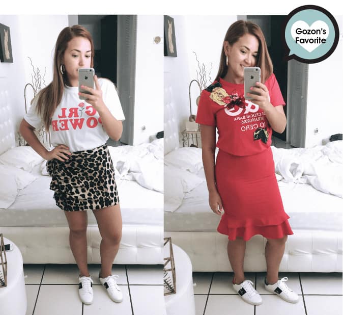 El primer día trate de buscar dos opciones parecidas para ver cómo papi reaccionaba. Ambos tenían las mismas pantallas y los mismos sneakers, combinados con una camiseta y una falda. De todo el experimento, esta fue la única opción donde mi papá y yo coincidimos.