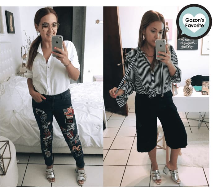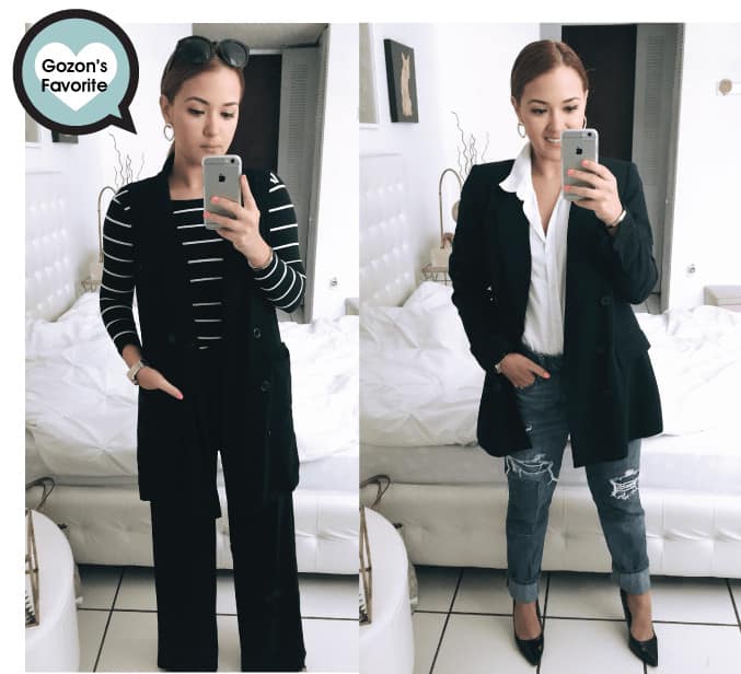 Los dos looks eran para ir a trabajar, pero soy fiel creyente de que no necesito ir a una oficina con un outfit aburrido o muy serio. Tengo la libertad de ser creativa con lo que me pongo a diario. Una vez más mi favorito era el contrario al que papi escogió. Pero, la verdad es que me imaginaba que iba a escoger la opción negra monocromática. ¿La excusa? Que me tomaran en serio. De cualquier manera entiendo que me veo profesional, solo que una más chic que la otra.