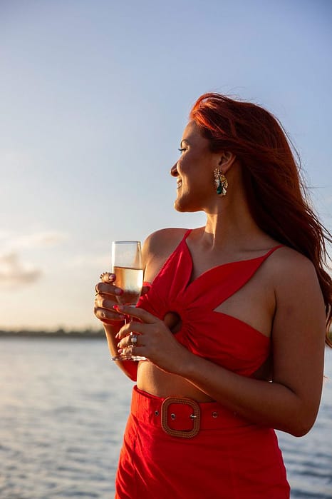 Lo más brutal de la experiencia es que yo estaba de punta en blanco con un vestido rojo elegante y tacones, en medio de la Laguna de Condado. No me entripé en ningún momento. Solo mi garganta con la sensación de frescura y efervescencia del espumoso.