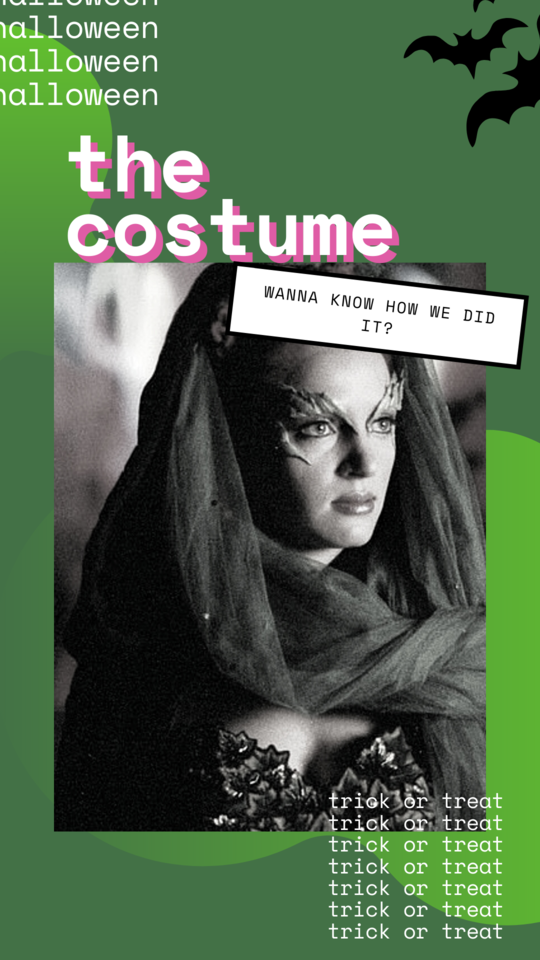 Desde la elección de las telas hasta la sombra de maquillaje, cada detalle fue cuidadosamente seleccionado para capturar la esencia de esta villana. Para prepararme, hice un moodboard de la inspiración del disfraz. No encontré ninguno que me enamorara, así que me fui full DIY.