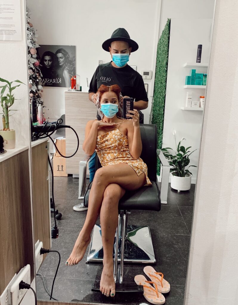 Peinado por Oleo Hair Studio: extensiones perfectas, medio moño y el rojo en su peak.