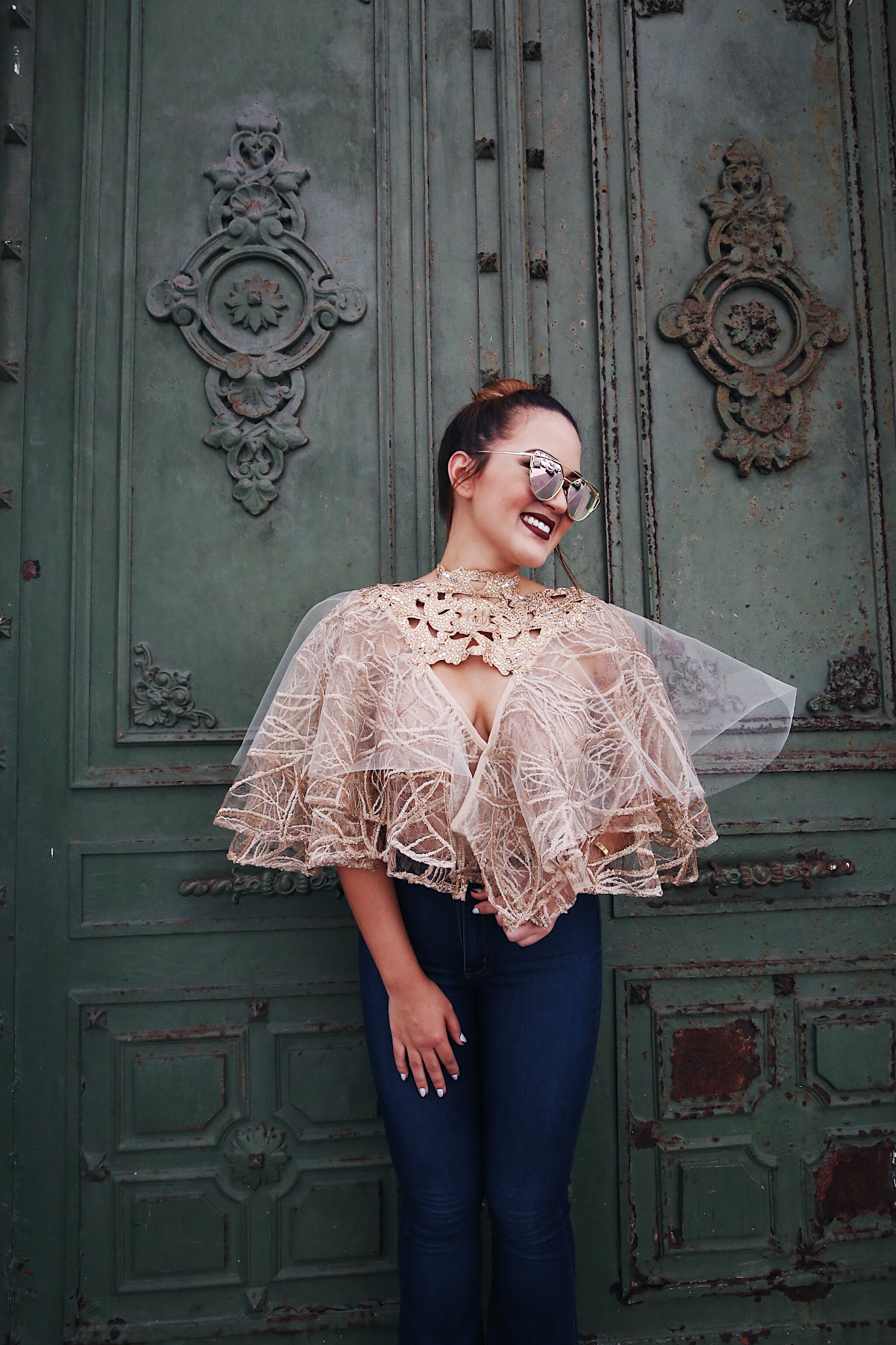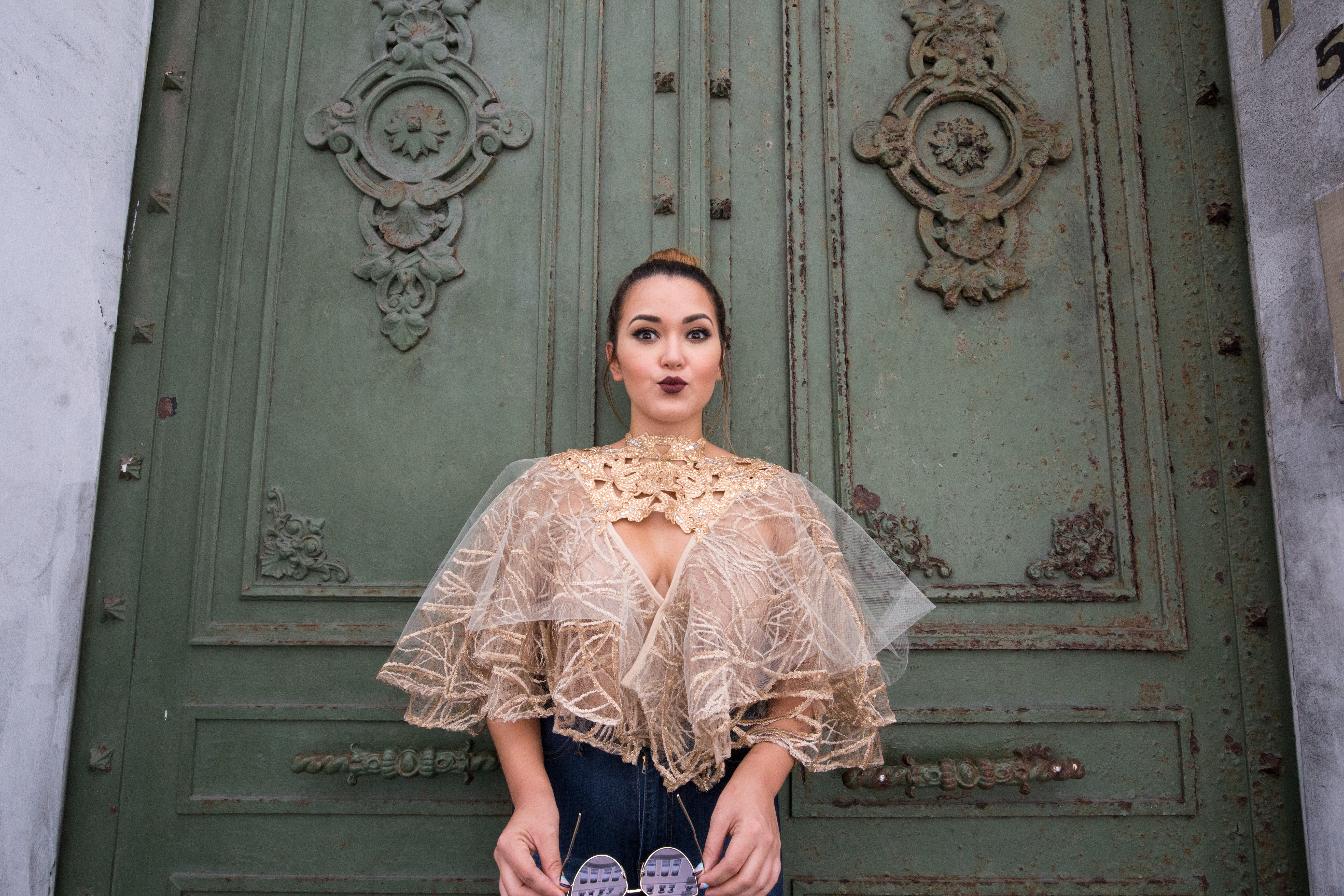 Esta versión sofisticada del poncho la vi por primera vez en uno de los desfiles de San Juan Moda de la diseñadora puertorriqueña Janice Emilia. ¡Fue amor a primera vista! Me fascinaron los detalles del cuello así que no podía dejar pasar la oportunidad de colaborar con esta diseñadora local.