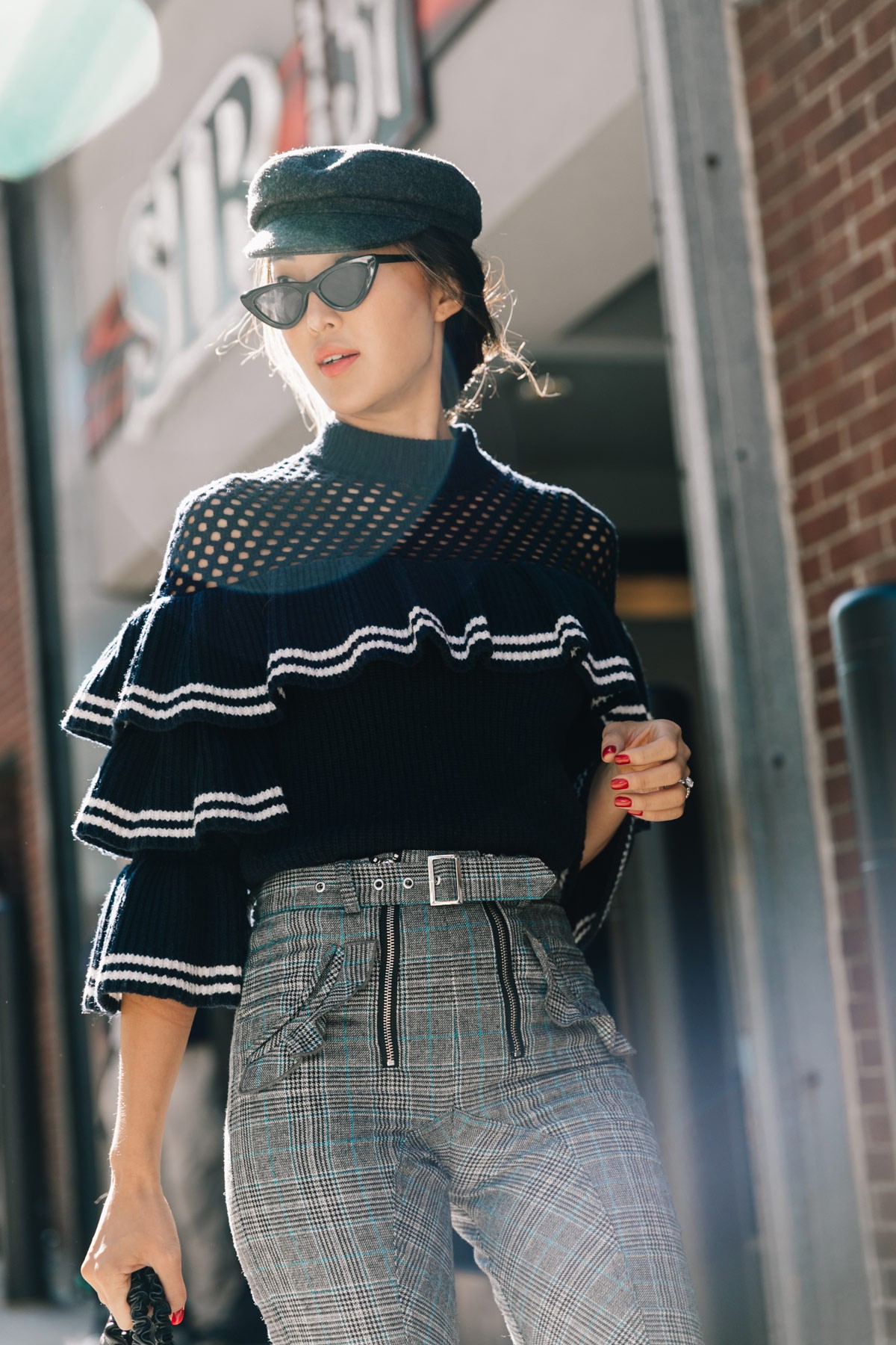 Por su parte, el tartán, o popularmente conocido como plaid, consiste de muchas líneas verticales y horizontales cruzadas entre sí. Lo podrás ver en pantalones, chaquetas, faldas, blusas, abrigos y suele darle una vibra preppy (de uniforme y escuela) a tu atuendo.