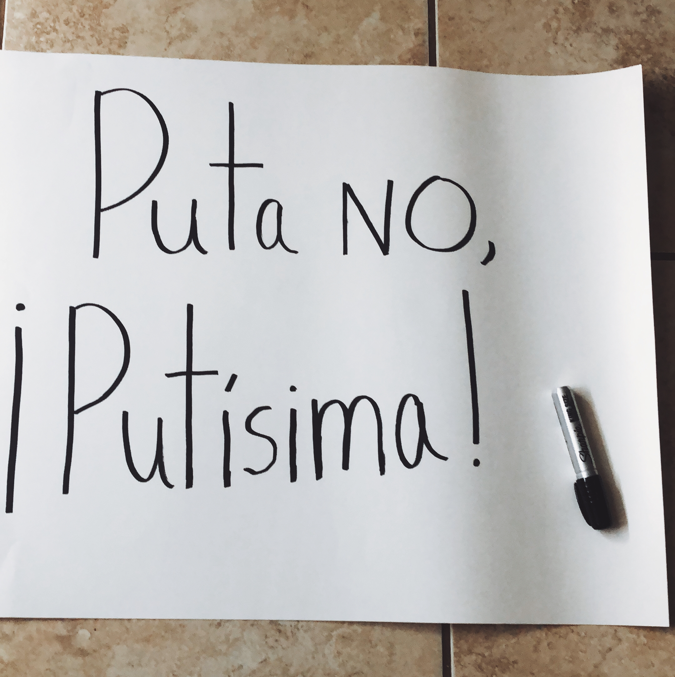 Mientras preparaba las cartulinas, me enviaron un arte con un copy que decía “puta no, putísima” y me encantó así que lo puse en la segunda pancarta (más adelante me entero que es de @capela.love) y fue este el que terminé utilizando para la manifestación (el otro lo regalé).