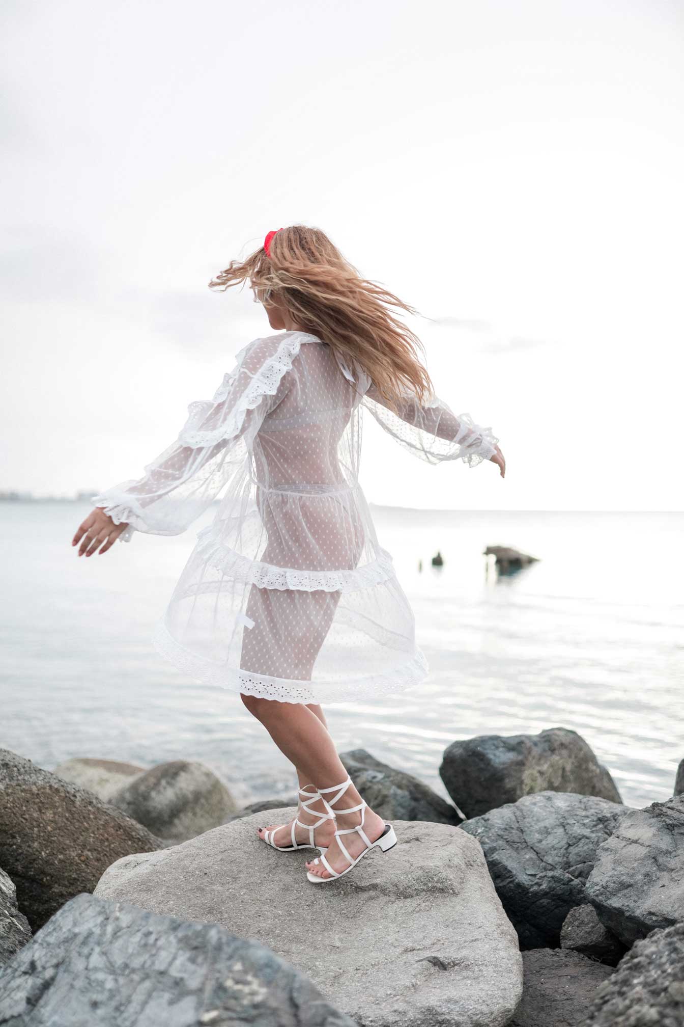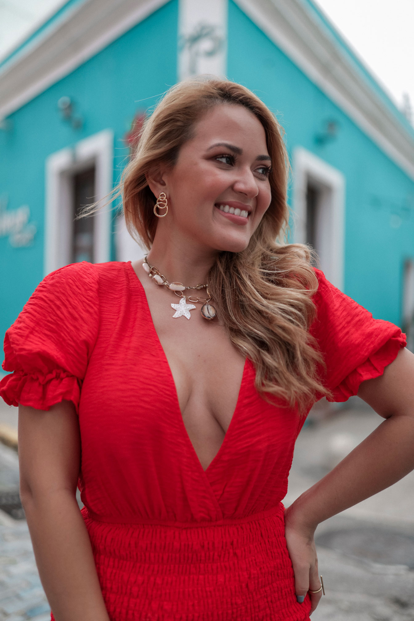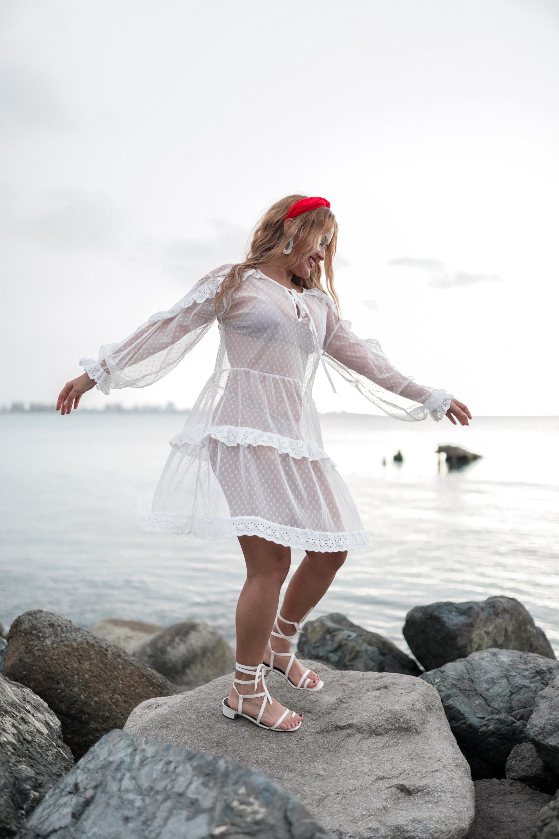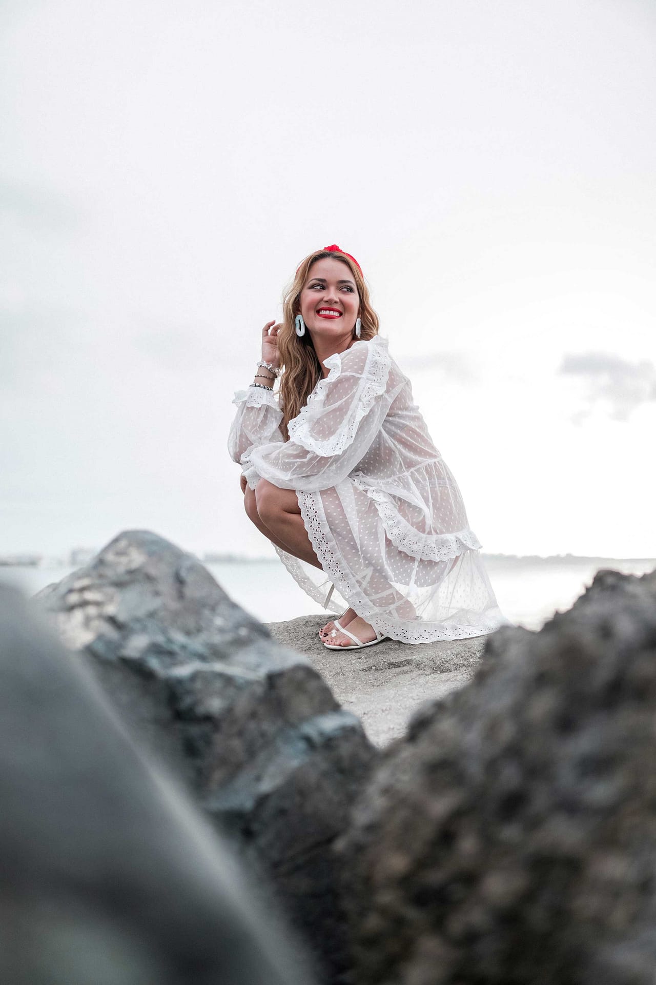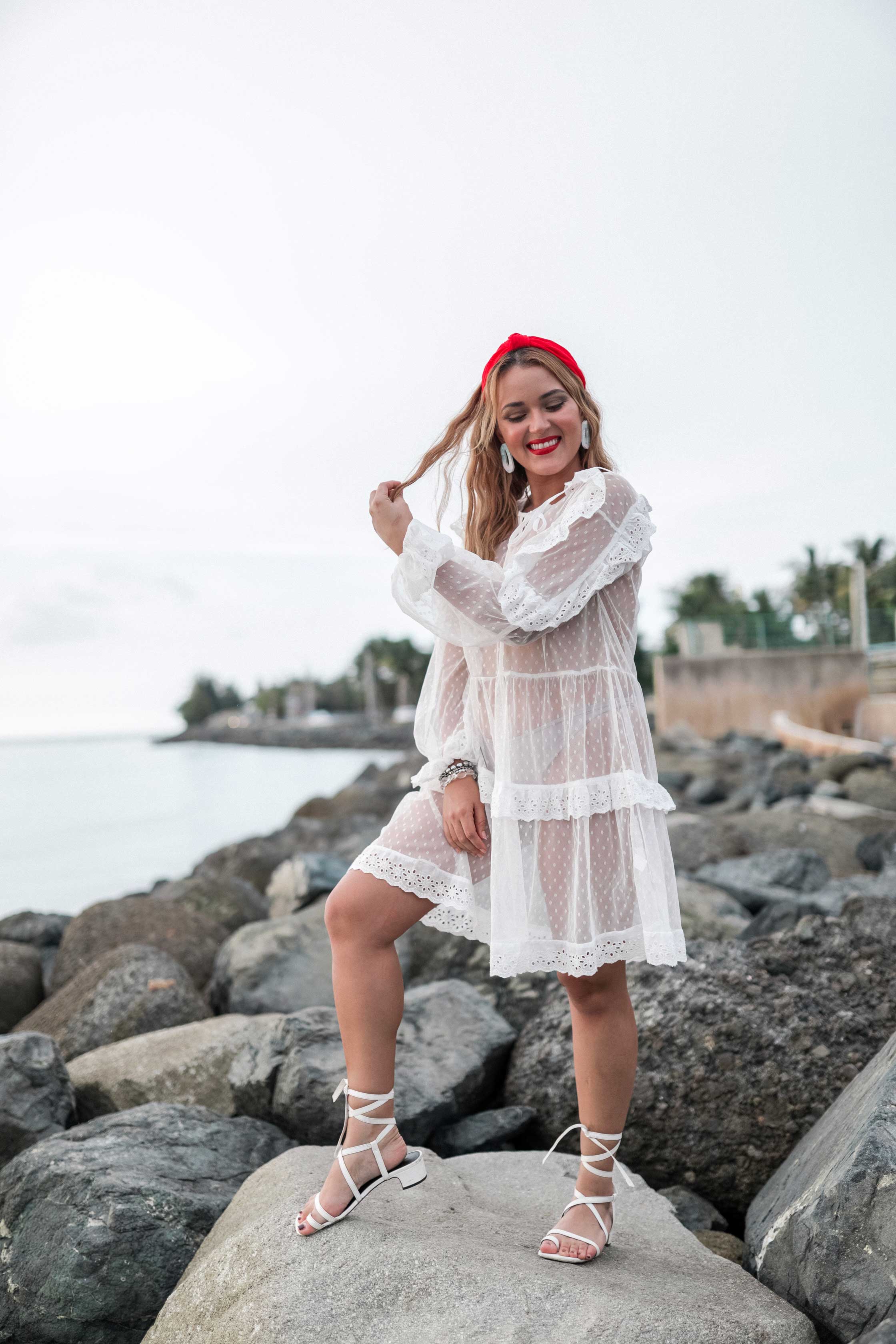 Dale un pop de color al clásico vestido blanco de verano. Resalta tu bronceado después de un día bajo el sol añadiéndole la picardía del rojo en los labios y en tus accesorios del cabello.
