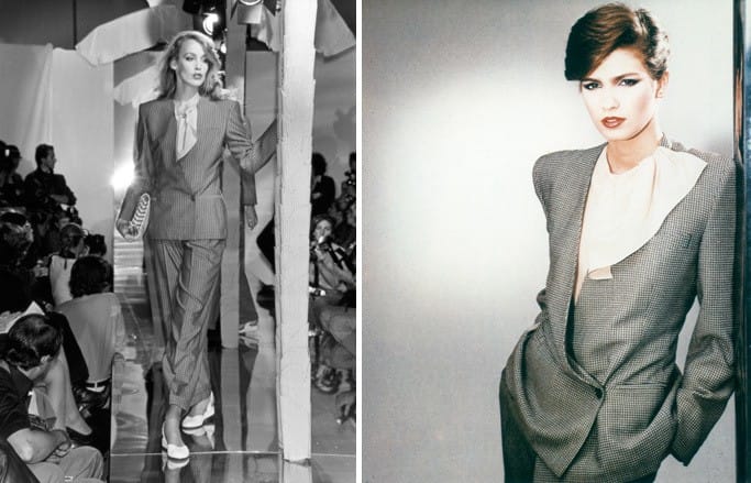 Con el boom de Wall Street en los ’80, todos querían tener un power suit. Armani fue uno de los diseñadores que manejó revolucionar la moda femenina al diseñar estratégicamente estos suits exclusivamente para mujeres haciéndolas ver poderosas, pero sin perder la sensualidad detrás de su feminidad.